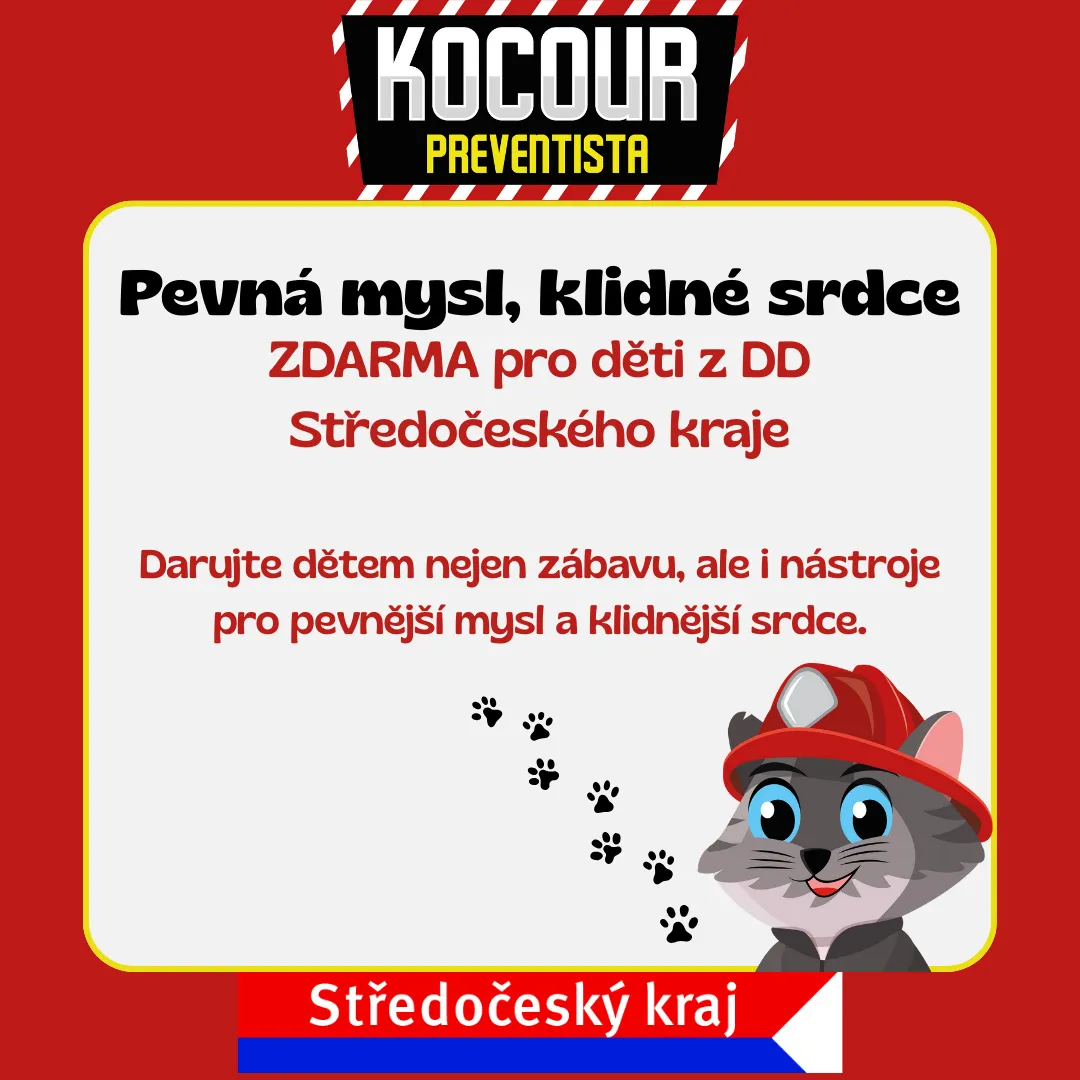 Spolek ZACHRAŇ ŽIVOT z.s. s hrdostí oznamuje, že jeho nový projekt zaměřený na podporu duševního zdraví dětí z dětských domovů „Kocour Preventista: Pevná mysl, klidné srdce“ získal podporu hejtmanky Středočeského kraje Mgr. Petry Peckové. Díky finanční podpoře kraje bude projekt realizován v průběhu října a listopadu letošního roku. Program, který je určen dětem ve věku 6–15 let, přináší interaktivní a zážitkové aktivity přímo do dětských domovů. Jeho cílem je pomoci dětem zvládat stres, pracovat s emocemi, posílit jejich sebevědomí a nabídnout jim praktické nástroje pro každodenní život. Projekt proběhne v 10 Dětských domovech zřizovaných Středočeským krajem a zapojí se do něj přibližně 400 dětí.