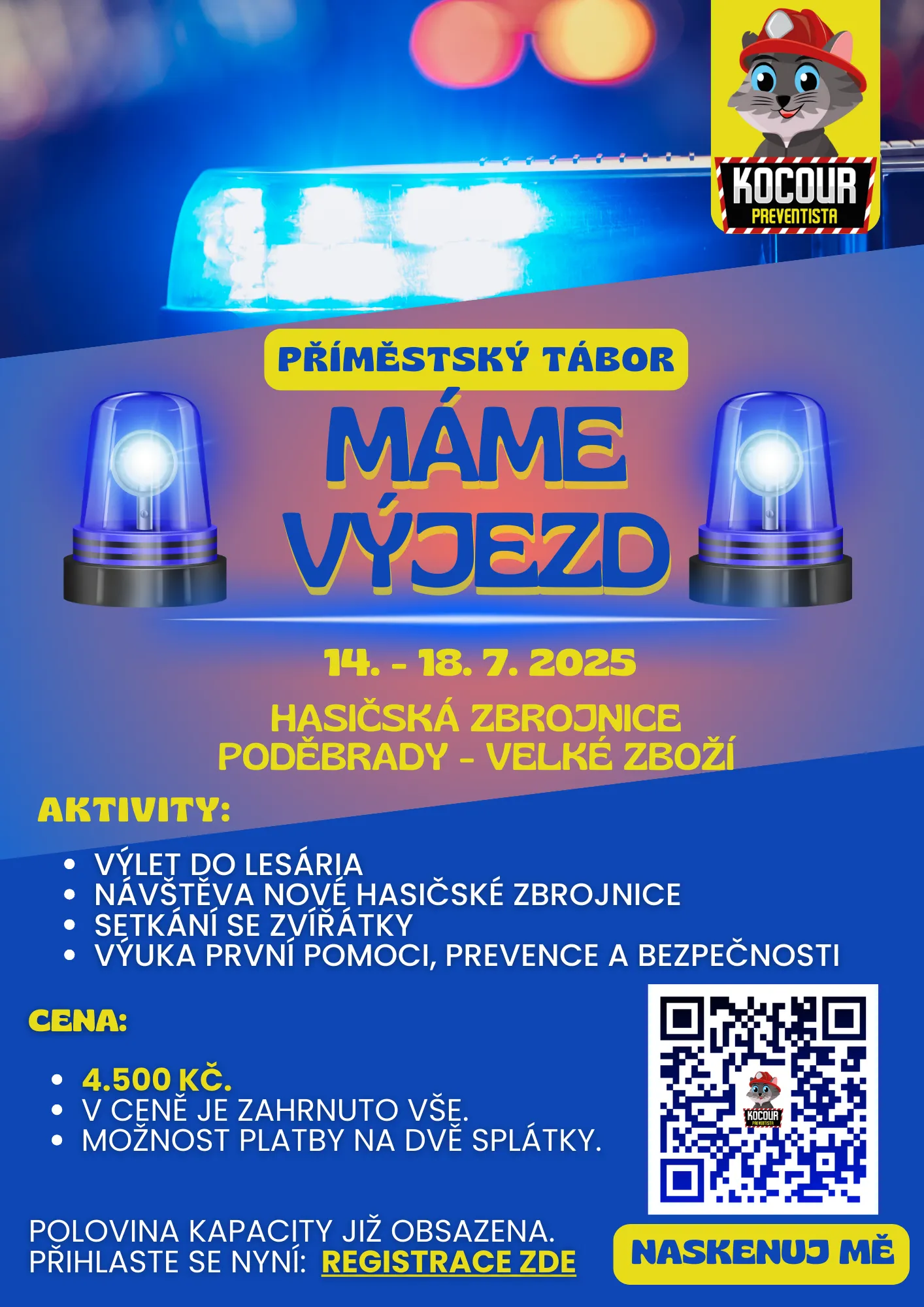 🎉 Máme výjezd! 🚨 Milé děti, vážení rodiče, s velkou radostí oznamujeme konání třetího ročníku příměstského tábora Kocoura Preventisty, který se letos ponese v duchu nezapomenutelného dobrodružství, objevování a především zábavného vzdělávání. Připravte se na týden plný akce, nových zážitků a praktických dovedností, které mohou jednou zachránit život!